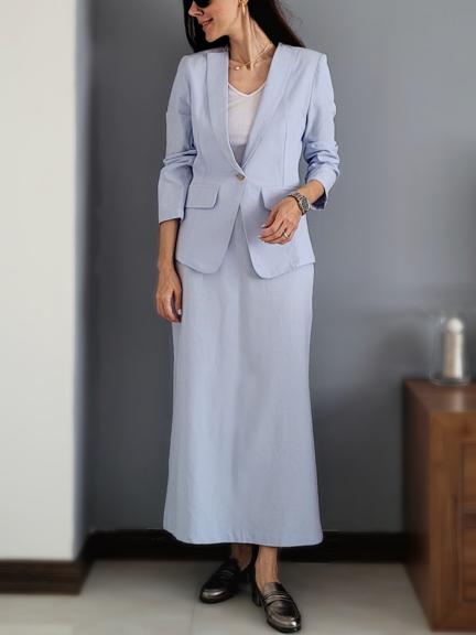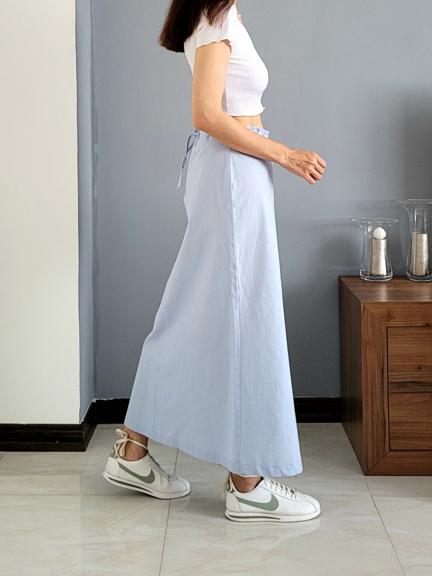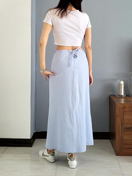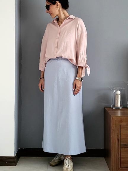 دامن پشت پاپیون نینابیژه با پارچه لینن میتونه با انواع لباس ها از کت گرفته تا شومیز یک استایل بینظیر ئ در عین حال خنک را برای شما به ارمغان بیاره. این دامن در دورنگ سرمه ای و آبی روشن تولید شده و قراره رنگبندی های جذاب دیگری هم به آن اضافه گردد.