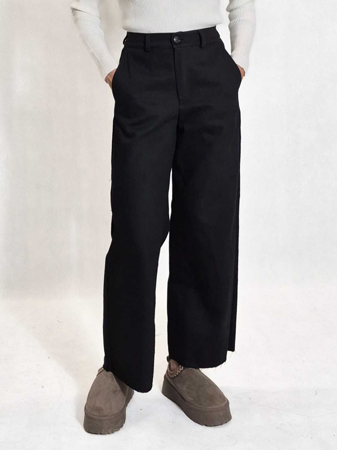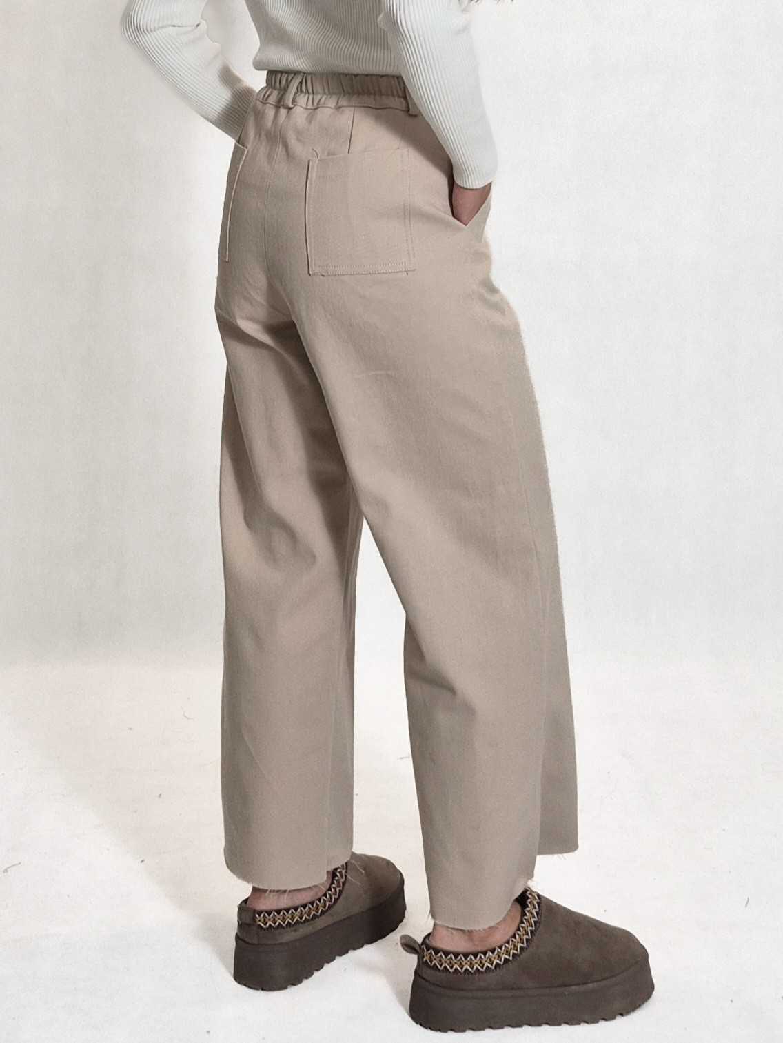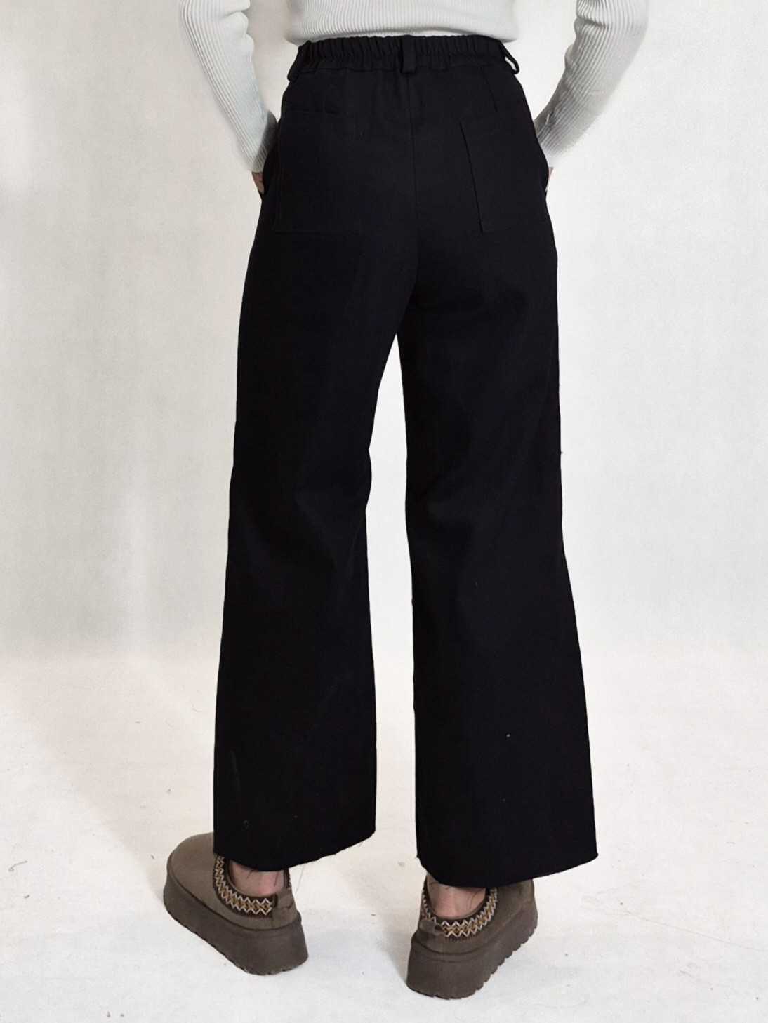 شلوار کتان واید نینابیژه از کتان نسبتا گرم بالا و مشابه جین، در سه رنگ کاربردی سفید-شیری، کرم نسکافه ای و مشکی و سه سایز مناسب 36 الی 46 جدول سایزبندی نینابیژه تهیه شده است. پشت شلوار جهت پر کردن گودی کمر کش کار شده است.