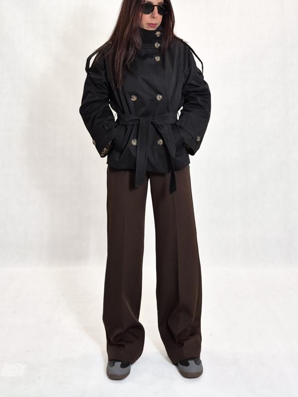 شلوار کرپ نیم بگ در سه سایز مناسب 36 الی 46 جدول سایزبندی نینابیژه تولید شده است. پشت شلوار جهت پرکردن گودی کمر کش می باشد. جنس شلوار برای رنگ های مشکی، قهوه ای و خاکستری به ترتیب کرپ مازراتی، کرپ سوپرمازراتی و کرپ فیونا می باشد.